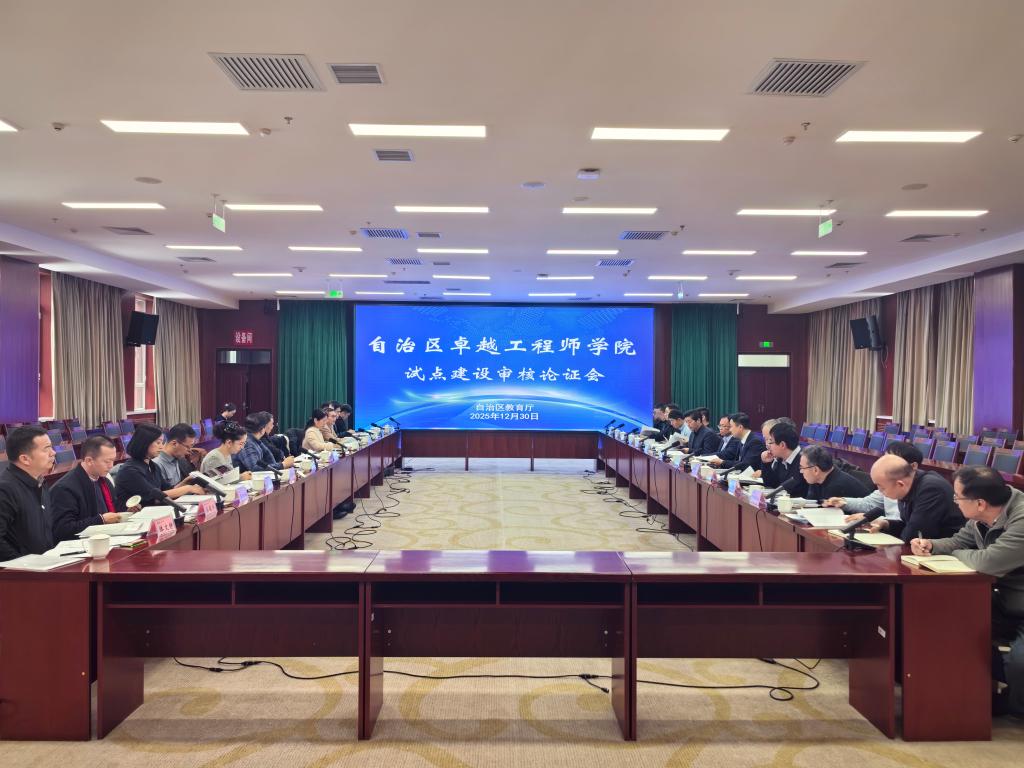 2025年12月30日,自治区卓越工程师学院试点建设审核会议在新疆大学召开。会议由自治区教育厅组织召开,自治区党委组织部、科技厅、工信厅、人社厅、国资委相关厅局领导,以及来自中国地质大学(北京)、中国科学技术大学、复旦大学、山东大学、北京邮电大学的援疆专家组成评审组,对新疆大学申报的自治区卓越工程师学院试点建设项目进行专项论证。新疆大学党委副书记、校长马新宾及相关职能部门、学院负责人出席会议。会前,评...