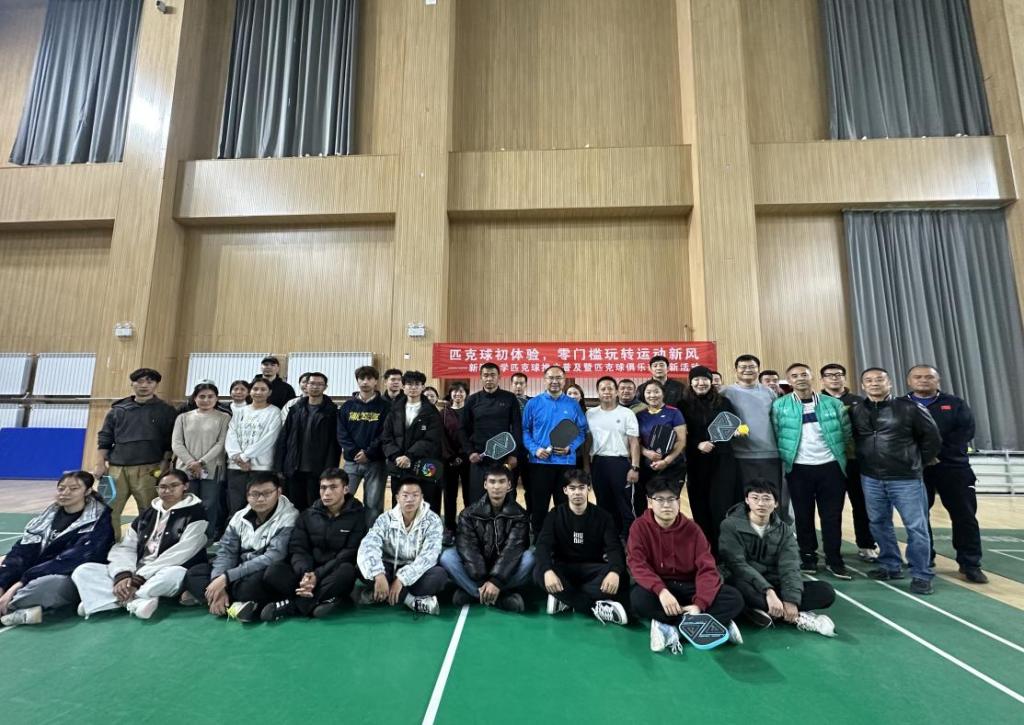 为落实“健康中国”战略,10月15日,新疆大学体育教学研究部在博达校区南区训练馆举办“匹克球初体验,零门槛玩转运动新风”推广暨俱乐部纳新活动。校党委常委、副校长晋刚出席活动并讲话,体育教研部副书记戴建明主持活动。