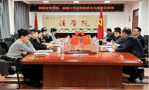 2025年12月26日下午,新疆大学法学院党委与新疆法官学院党支部在新疆大学联合开展“深学笃行中央全面依法治国会议精神,奋力谱写法治新疆建设新篇”主题党日活动。双方领导班子及党员师生代表共40余人参加。