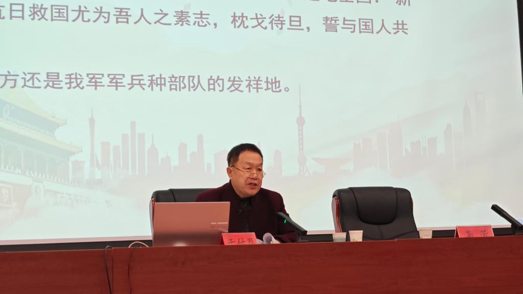 于付恩以《抗战精神在新疆熠熠生辉——中国人民抗日战争中的新疆力量》为主题,紧密围绕习近平总书记关于抗战精神的重要论述,从“抗战胜利的历史意义”“抗战精神的核心内涵”“中国共产党在抗战中的中流砥柱作用”三个维度,详细阐释了中国人民抗日战争时期新疆各族人民做出的历史贡献。