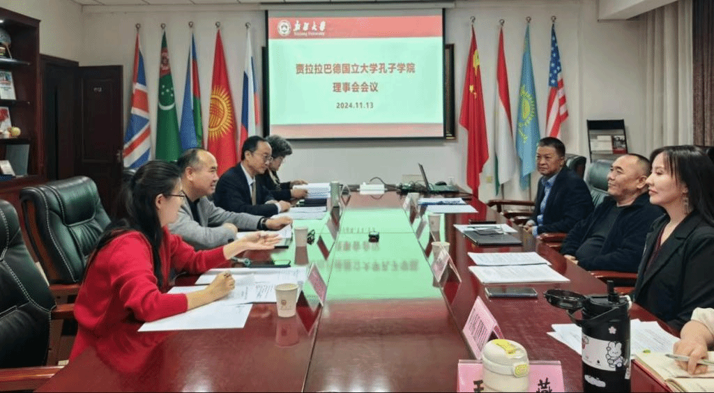 11月13日,2024年吉尔吉斯斯坦贾拉拉巴德国立大学孔子学院理事会会议在新疆大学顺利召开。大学党委常委、副校长晋刚,贾拉拉巴德国立大学校长乌森诺夫·肯尼什别克、孔子学院中方院长付鸿军及吉方院长玛吾柳达·沙克洛娃参加会议,会议由新疆大学国际交流与合作处处长朱新武主持。